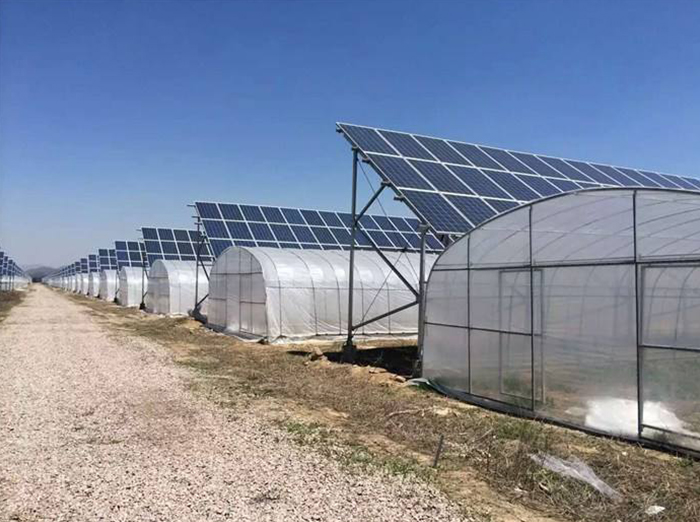 光伏農(nóng)業(yè)科技大棚是分布式光伏應(yīng)用的一種新的模式。與建設(shè)集中式大型光伏地面電站相比,光伏農(nóng)業(yè)科技大棚項(xiàng)目有諸多的優(yōu)點(diǎn)。首先,光伏農(nóng)業(yè)大棚利用的是農(nóng)業(yè)大棚的棚頂,并不占用地面,也不會(huì)改變土地使用性質(zhì),因此能夠節(jié)約土地資源;其次,通過在農(nóng)業(yè)大棚上架設(shè)不同透光率的太陽能電池板,能滿足不同作物的采光需求,可種植有機(jī)農(nóng)產(chǎn)品、名貴苗木等各類高附加值作物,還能實(shí)現(xiàn)反季種植、精品種植;利用棚頂發(fā)電不僅可以滿足農(nóng)業(yè)大棚的電力需求,還可以將剩余的電并網(wǎng)出售,增加收益。
